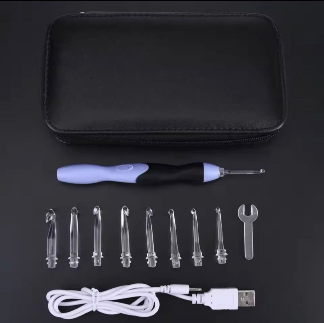 محفظة أنيقة تحتوي على 8 رؤوس إبر مع مقبض قابل للشحن وأداة بتركيب الرؤوس قياسات الابرة 3.5مم 4مم 4.5مم 5مم 5.5مم 6مم 6.5مم