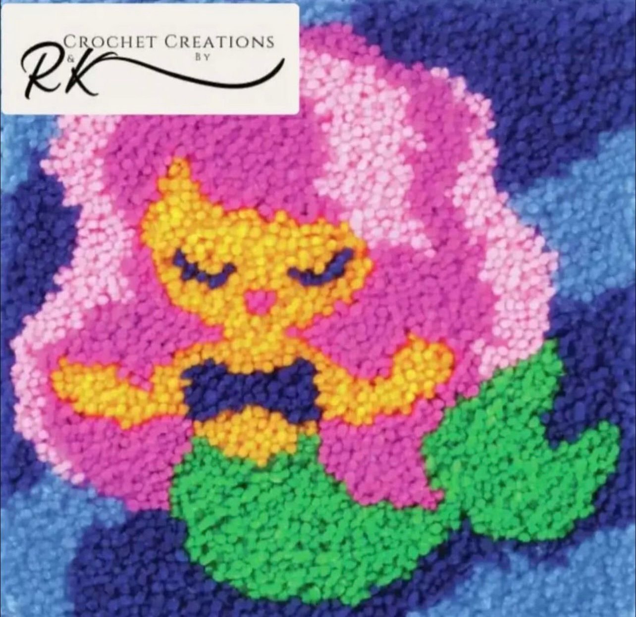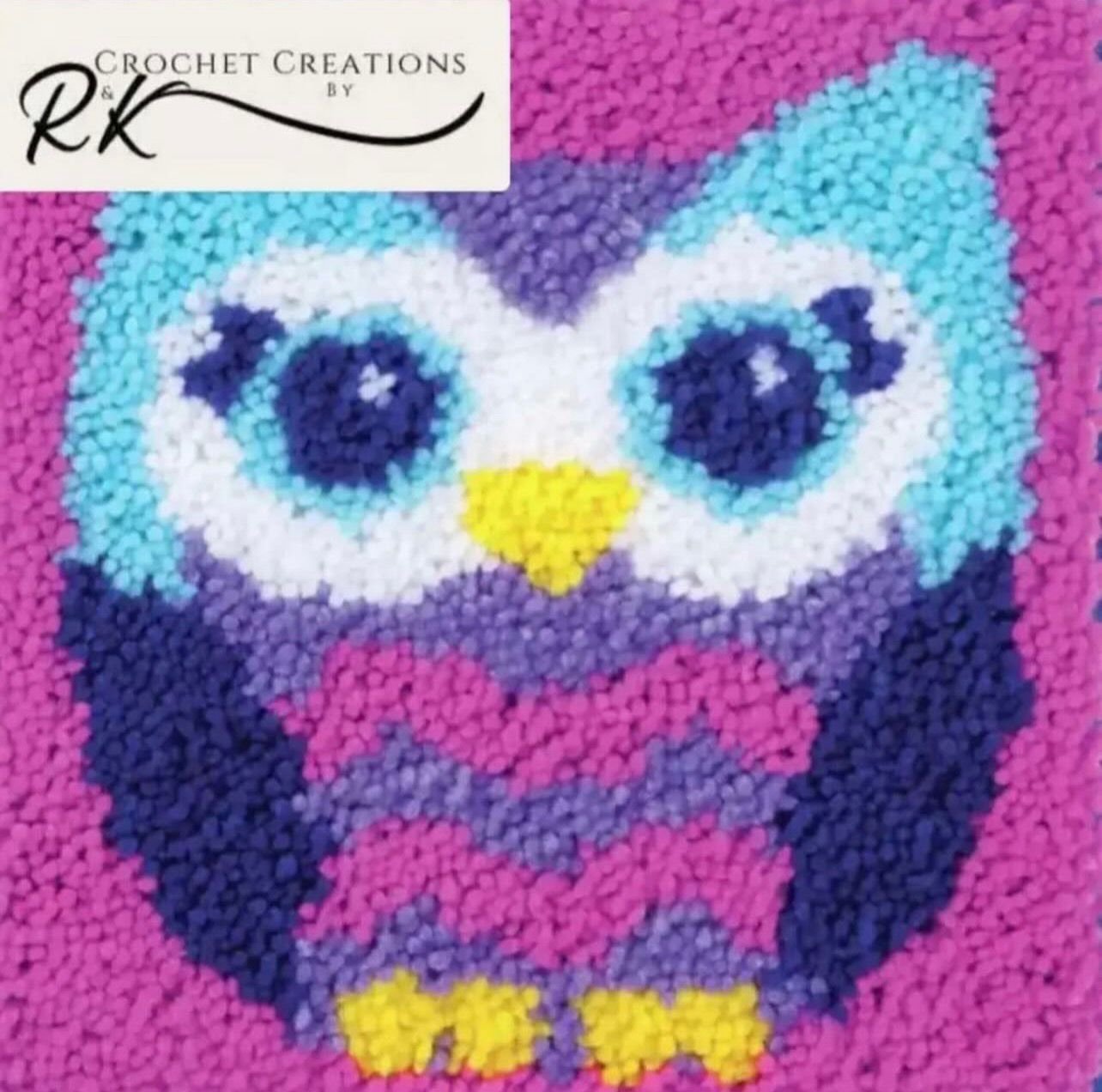 طقم خياطة Latch hook كامل لمشاريع الكروشيه. اختر من بين ثلاثة أشكال ساحرة: بومة، فراشة، أو حورية البحر. مثالي للمبتدئين وهواة الحرف اليدوية الباحثين عن إبداع.