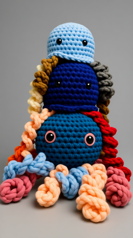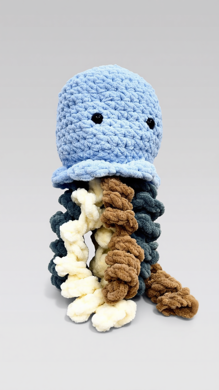 لعبة قنديل البحر المحشوة بالكروشيه اليدوية، ناعمة ومريحة. متوفرة بعدة ألوان جذابة، مثالية للزينة أو كرفيق دافئ.